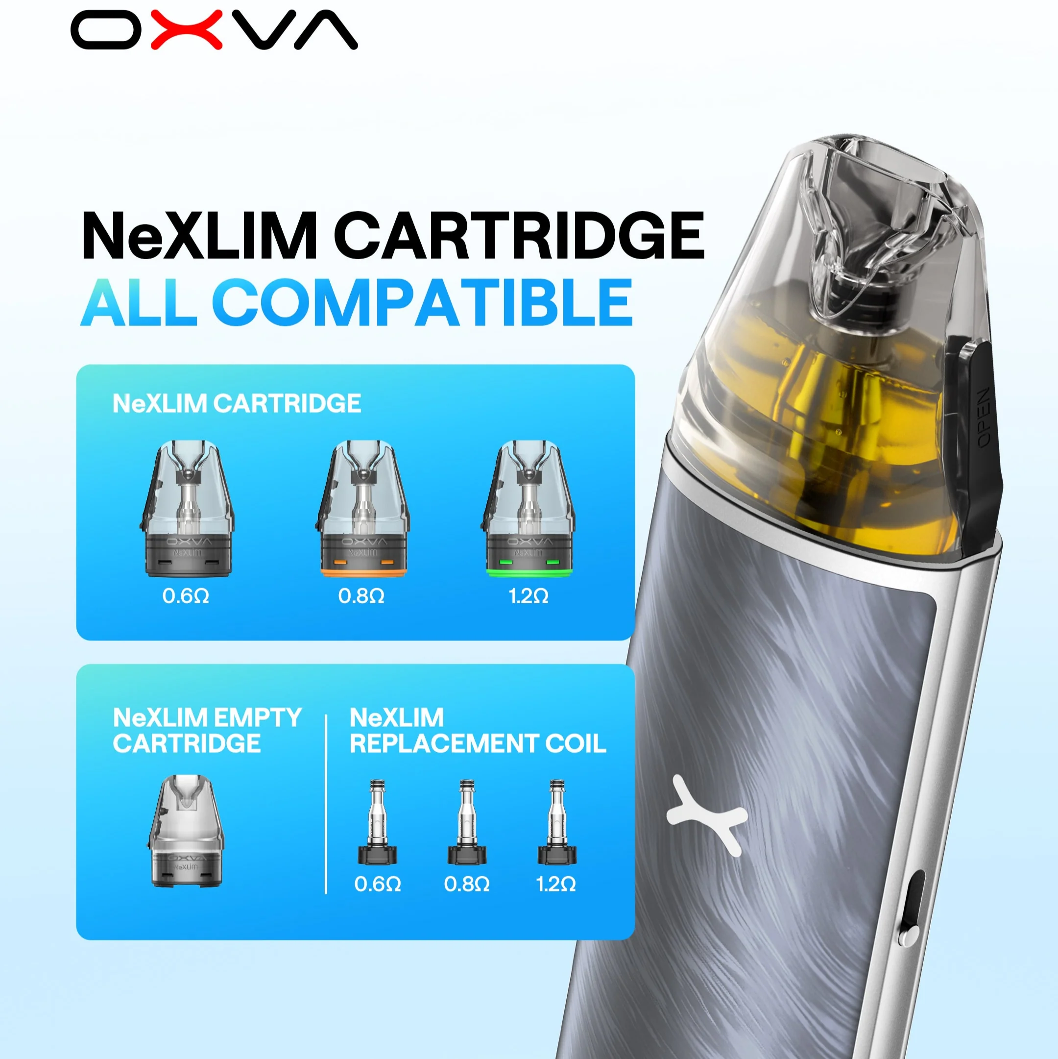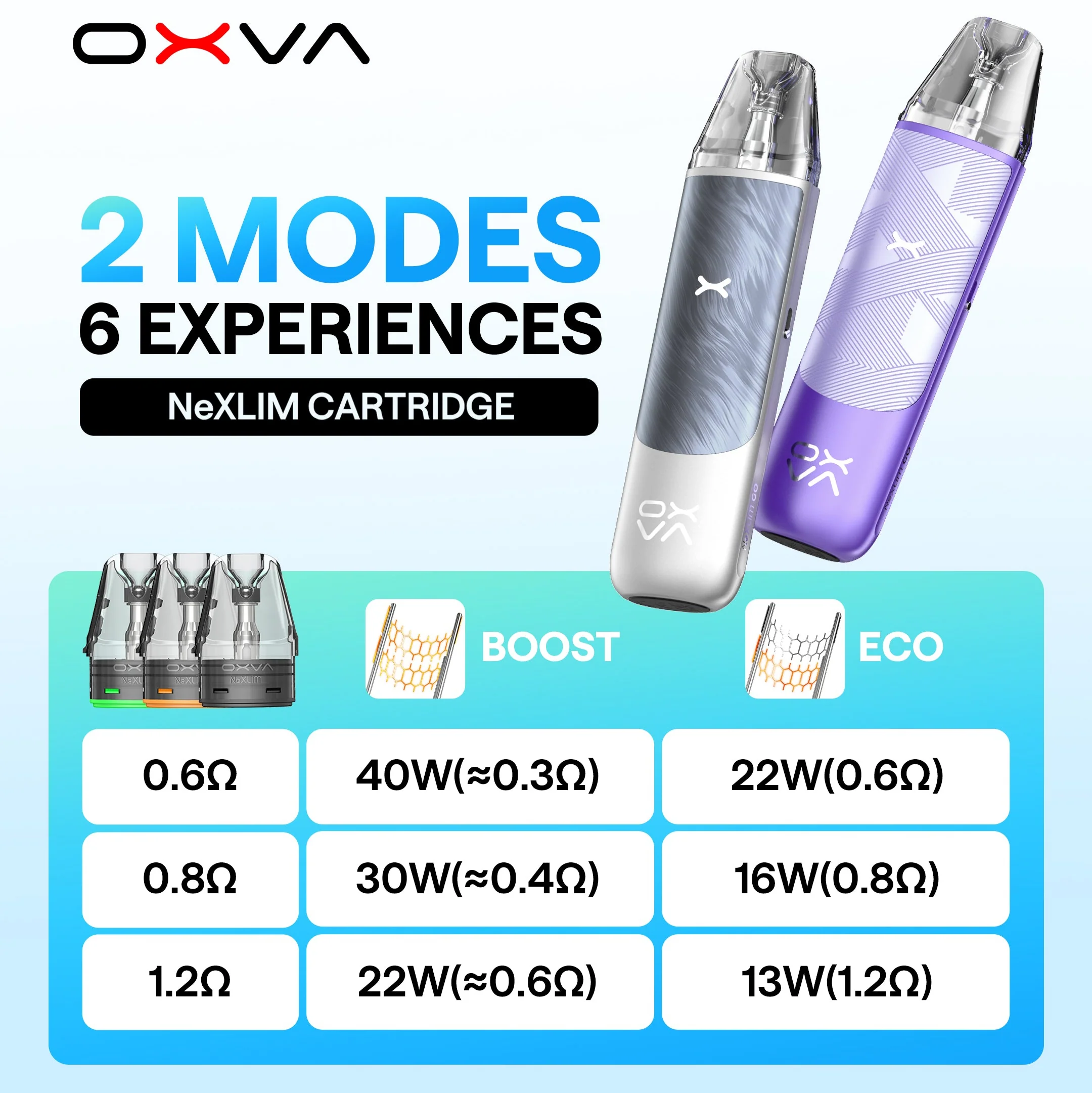 OXVA NeXLIM Go Pod Kit adalah vape cerdas dan ramping yang dirancang untuk memberikan kenyamanan maksimal dan performa optimal. Dengan baterai 1800mAh, perangkat ini mendukung penggunaan hingga 10 hari dalam Mode ECO, serta menawarkan dua mode hisapan: Regular Mode untuk hisapan halus dan Boost Mode untuk uap lebih tebal dan throat hit kuat. Didukung teknologi Unitech 2.0, NeXLIM Go secara otomatis menyesuaikan daya 5W–40W sesuai resistansi pod untuk rasa dan produksi uap terbaik. Dengan kapasitas 4ml, perangkat ini ideal untuk vaping harian maupun saat berpergian. Dilengkapi slider aliran udara, tarikan otomatis, dan pengisian cepat USB-C, serta kompatibel dengan nic salt dan freebase, NeXLIM Go adalah pilihan sempurna bagi vaper aktif yang mengutamakan fleksibilitas dan kemudahan penggunaan di mana saja.